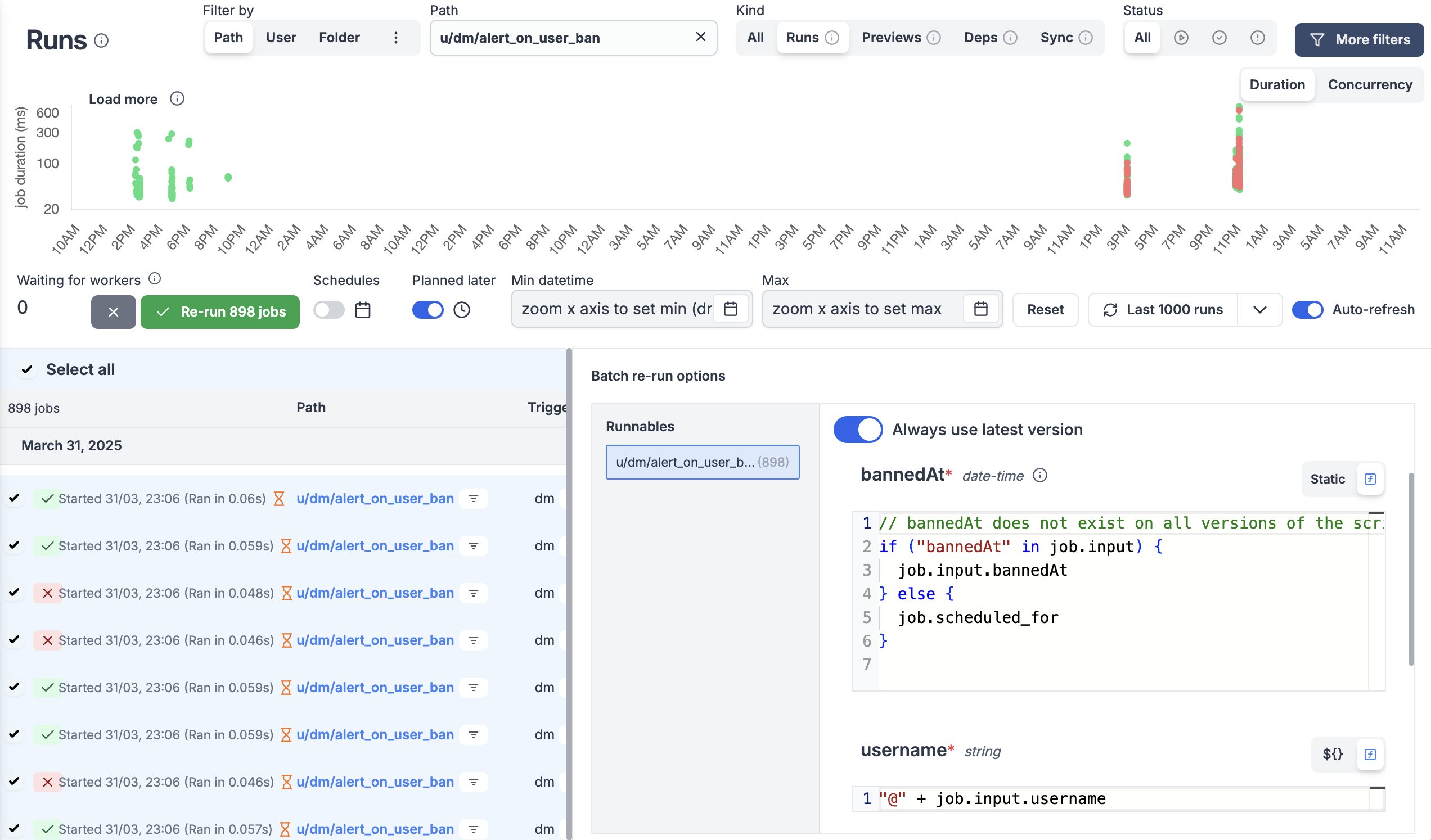 - Skipped runs are marked as success with skipped flag
