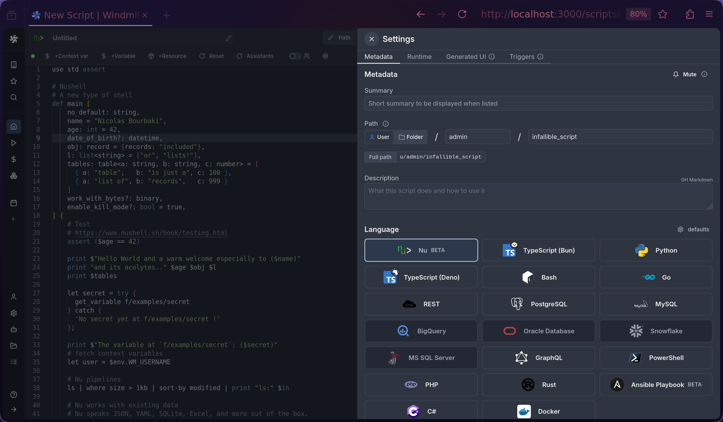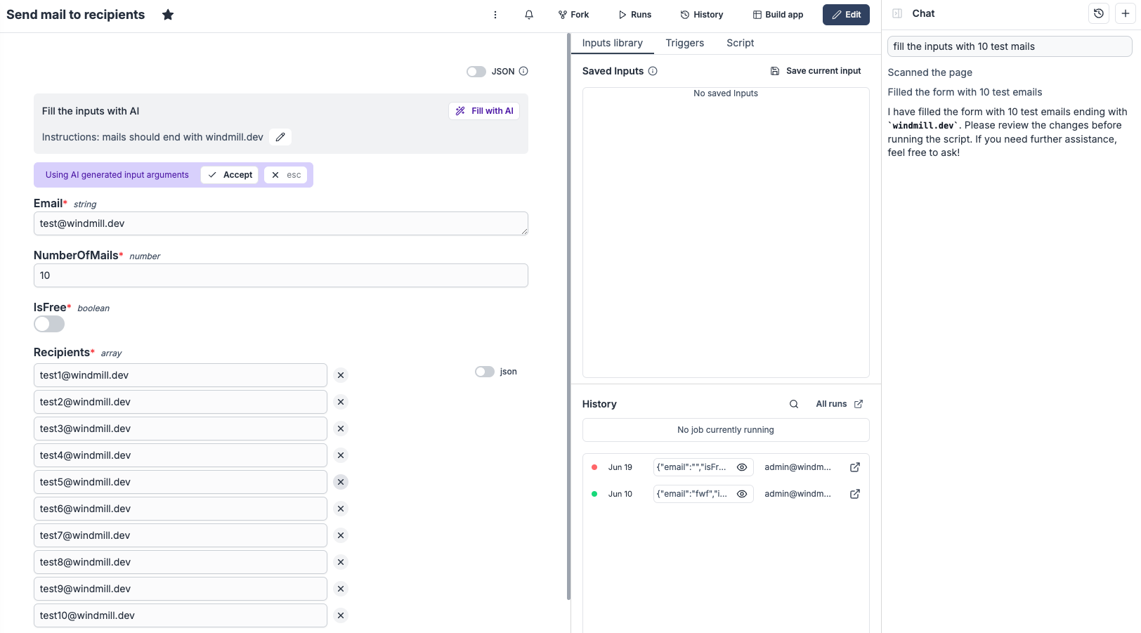 - Trigger scripts with @Windmill in public channels, private channels, DMs, and threads